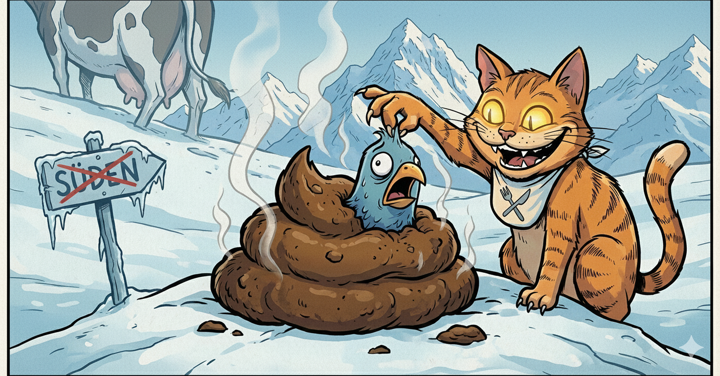 Bloßgestellt schwimmt er zum Schneider,